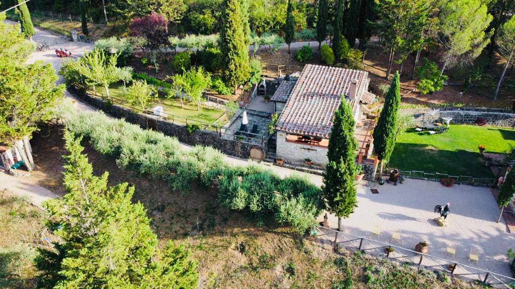 The Villa boasts a large covered loggia perfectly equipped with every comfort and has a splendid private garden adorned with a row of vines, fruit trees and an avenue of olive trees, creating an environment in perfect harmony with the Chianti countryside and its wonders.